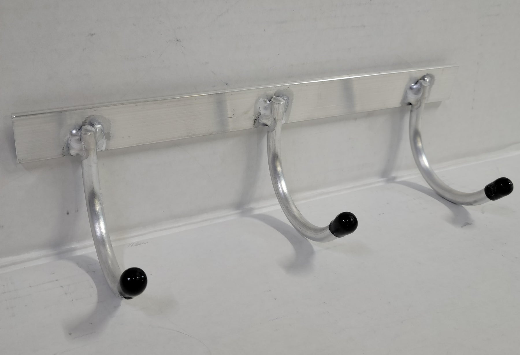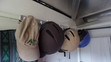 Get everything off your tack room floor! This half rack is great for smaller spaces (it's only 13 inches long), but it's big hooks can hold a lot of gear. This lightweight but sturdy, welded aluminum 3-hook rack easily mounts to trailer walls to keep tack organized. Comes complete with a black vinyl cap glued to each hook. To mount, drill your own mounting holes or weld on. Works with both aluminum and steel trailers, with no adverse reaction.