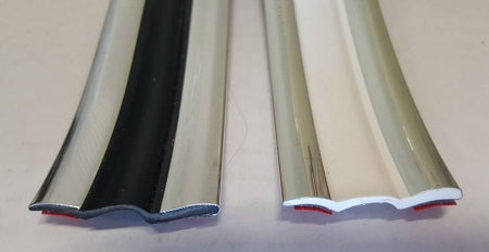 This shiny PVC chrome trim with a stripe down the center and can used for covering the flat seams on horse trailers. It has two industrial-strength 3M self-adhesive strips on the back, to insure a permanent installation. This product should last for years on your trailer. The ends will have to be finished with silicone or a aluminum end cap. Comes with instructions for application.